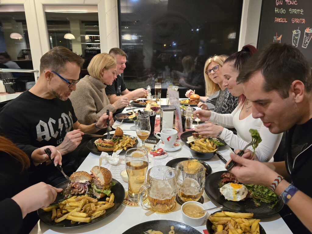 Po náročném dni plném aktivit a diskuzí jsme nezapomněli na to nejdůležitější – doplnit energii. Společné občerstvení bylo nejen příležitostí k oddechu, ale také k načerpání sil pro nadcházející výzvy.